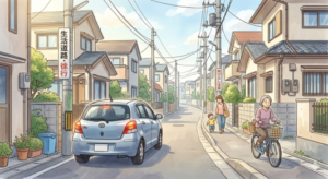 生活道路というのは、センターラインや中央分離帯のない車道や幅員が5.5m以内の道路が該当します。