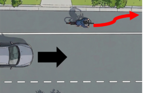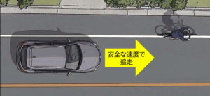 十分な間隔がない場合は、自転車との車間に応じた安全な速度まで減速し追走しなければなりません。