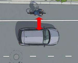 十分な間隔がある場合は、安全な間隔(目安1~1.5m以上)を保って安全な速度で追い越す必要があります。