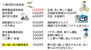 今回新たに自転車の取り締まり対象となる行動や反則金の一覧を貼っておきます。