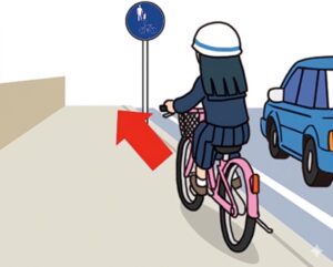しかし、歩道を走る場合は、歩道の車道寄りを進行する必要があり、徐行(すぐに停止できる速度である7~8㎞/時)が必要です。